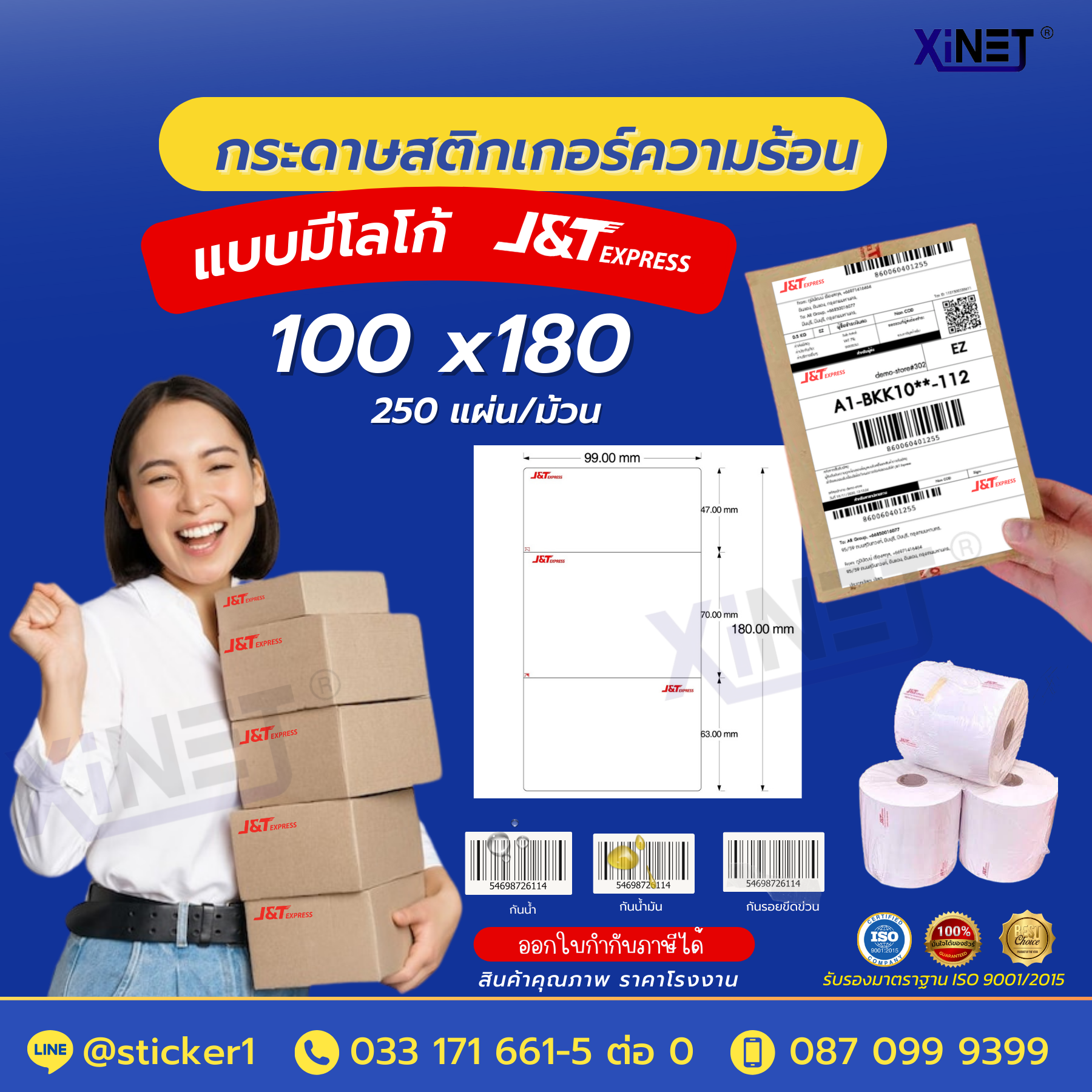 สติ๊กเกอร์ความร้อน โลโก้ J&Tและการขนส่ง / Thermal Sticker label J&T ขนาด100*180 mm. 250 ดวง/ม้วน